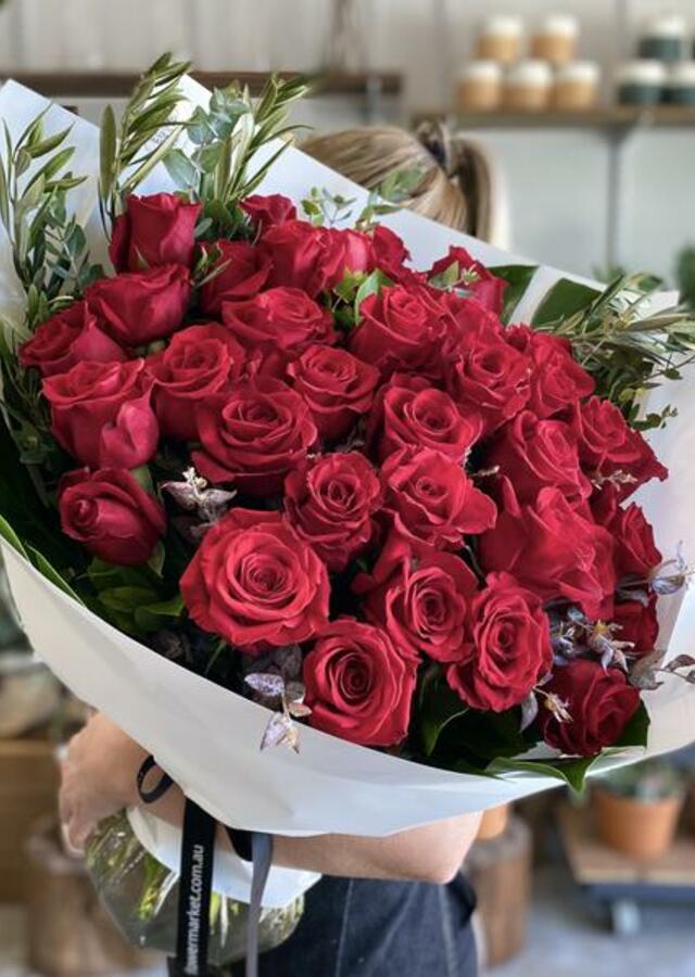 36 lovely long stem red roses are perfect for your special someone! Wow! 3 dozen roses sure will leave them breathless. (color can be changed)